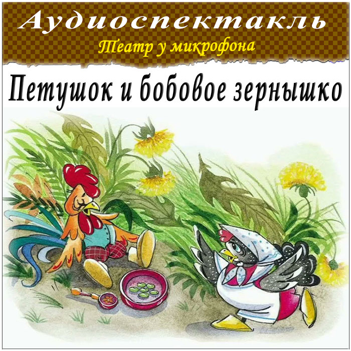 Жили-были петушок да курочка. Рылся петушок и вырыл бобок. —?Ко-ко-ко, курочка, ешь бобовое зёрнышко! —?Ко-ко-ко, петушок, ешь сам! Съел петушок зернышко и подавился. Позвал курочку: —?Сходи, курочка, к речке, попроси водицы напиться. Побежала курочка к речке: —?Речка, речка, дай мне водицы: петушок подавился бобовым зернышком! Речка говорит: —?Сходи к липке, попроси листок, тогда дам водицы. Побежала курочка к липке: —?Липка, липка, дай мне листок! Отнесу листок речке, речка даст водицы петушку напиться: петушок подавился бобовым зернышком. Липка говорит: —?Сходи к девушке, попроси нитку. Побежала курочка: —?Девушка, девушка, дай нитку! Отнесу нитку липке, липка даст листок, отнесу листок речке, речка даст водицы петушку напиться: петушок подавился бобовым зернышком. Девушка отвечает: —?Сходи к гребенщикам, попроси гребень, тогда дам нитку. Курочка прибежала к гребенщикам: —?Гребенщики, гребенщики, дайте мне гребень! Отнесу гребень девушке, девушка даст нитку, отнесу нитку липке, липка даст листок, отнесу листок речке, речка даст водицы петушку напиться: петушок подавился бобовым зернышком. Гребенщики говорят: —?Сходи к калашникам, пусть дадут нам калачей. Побежала курочка к калашникам: —?Калашники, калашники, дайте калачей! Калачи отнесу гребенщикам, гребенщики дадут гребень, отнесу гребень девушке, девушка даст нитку, нитку отнесу липке, липка даст листок, листок отнесу речке, речка даст водицы петушку напиться: петушок подавился бобовым зернышком. Калашники говорят: —?Сходи к дровосекам, пусть нам дров дадут. Пошла курочка к дровосекам: —?Дровосеки, дровосеки, дайте дров! Отнесу дрова калашникам, калашники дадут калачей, калачи отнесу гребенщикам, гребенщики дадут гребень, отнесу гребень девушке, девушка даст нитку, нитку отнесу липке, липка даст листок, листок отнесу речке, речка даст водицы петушку напиться: петушок подавился бобовым зернышком. Дровосеки дали курочке дров. Отнесла курочка дрова калашникам, калашники дали ей калачей, калачи отдала гребенщикам, гребенщики дали ей гребень, отнесла гребень девушке, девушка дала ей нитку, нитку отнесла липке, липка дала листок, отнесла листок речке, речка дала водицы. Петушок напился, и проскочило зернышко. Запел петушок: —?Ку-ка-ре-куу!